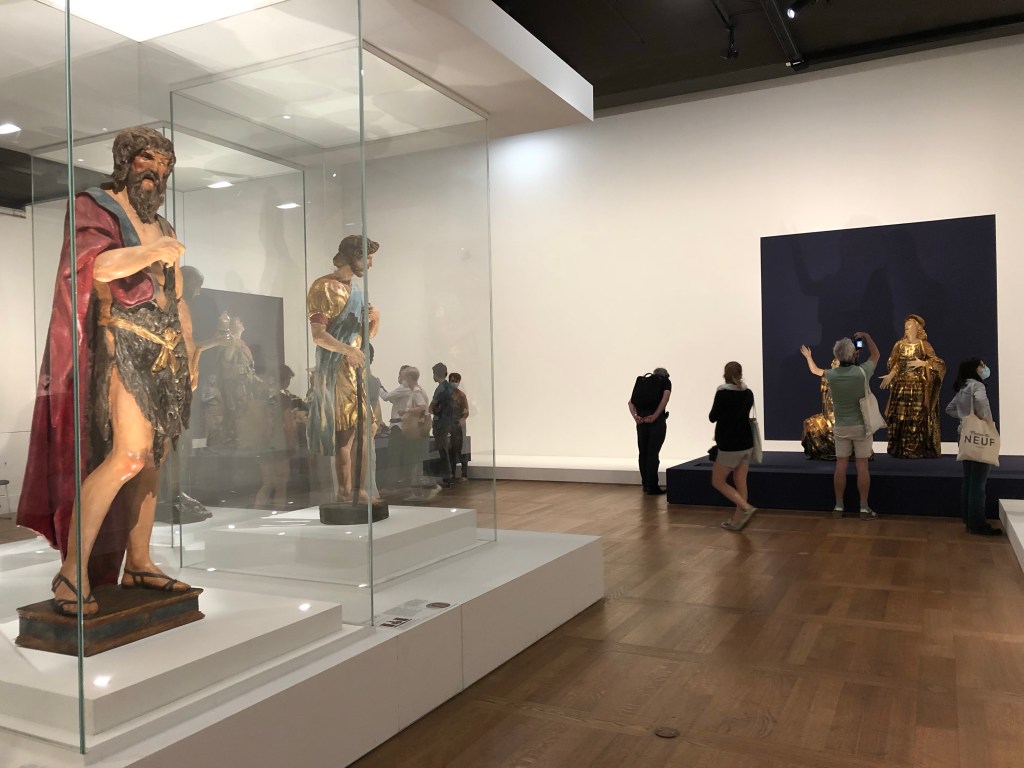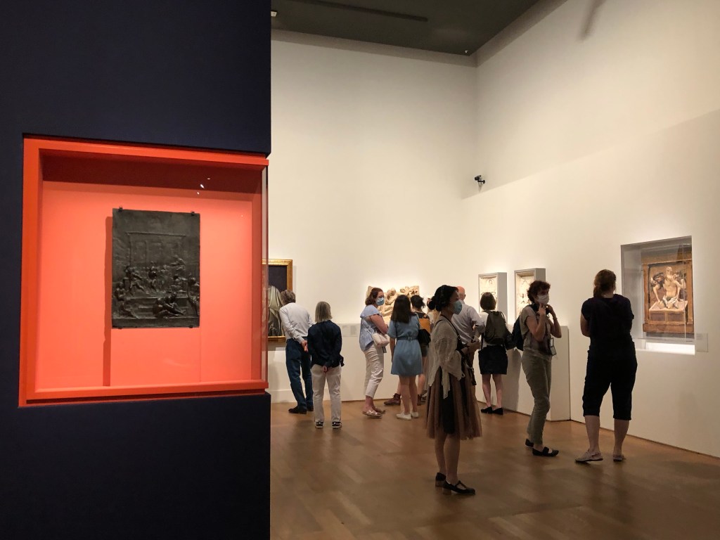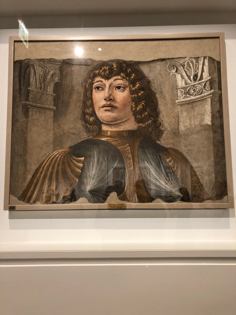 Ça y est c’est le déconfinement après l’épidémie de Coronavirus, les musées ont réouvert leurs portes, on peut aller au restaurant et au café… Tout de même ce n’est pas simple de revenir aux vieilles habitudes et se replonger dans lés mêlées. Nous avons pu réserver un créneau pour aller visiter l’expo événement au Louvre organisée avec le Castello Sforzesco, car sur les plusieurs mois prévus au départ elle n’a été ouverte que quelques semaines et tout a été décalé à cause de l’épidémie. On ne peut voir l’expo que jusqu’au 21 juin, mais après elle devrait être présentée au Castello Sforzesco à Milan.