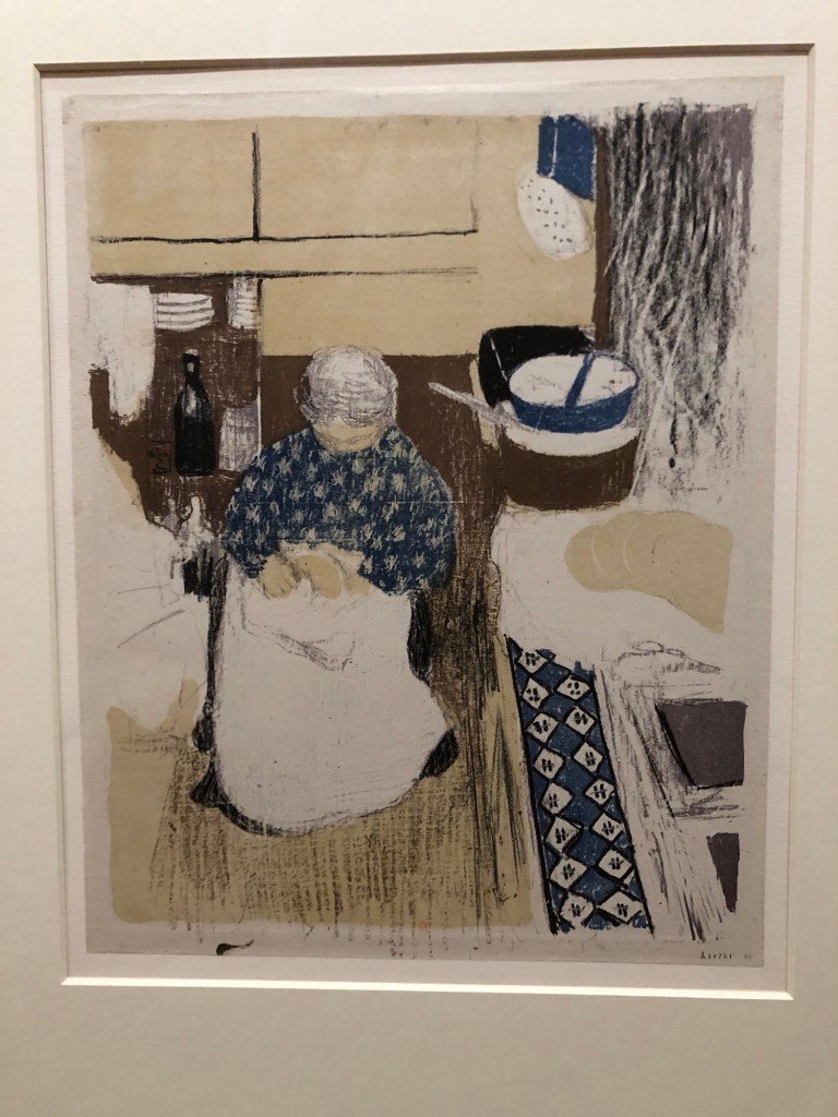Série de lithographies colorées de Vuillard, sur son sujet de prédilection les intérieurs.Ma série préférée de lithographies évidemment, des visions du quotidien parisien par BonnarIci je me suis étonnée de ce jeu étonnant d’échelles ou les enfants jouant au premier plan sont énormes Maurice Denis a été le plus romantique, ces lithographies lui ont été inspirées par l’amour pour sa fiancéeJe suis tout à fait d’accord avec cette maxime que l’âme se trouve dans les gestes lents