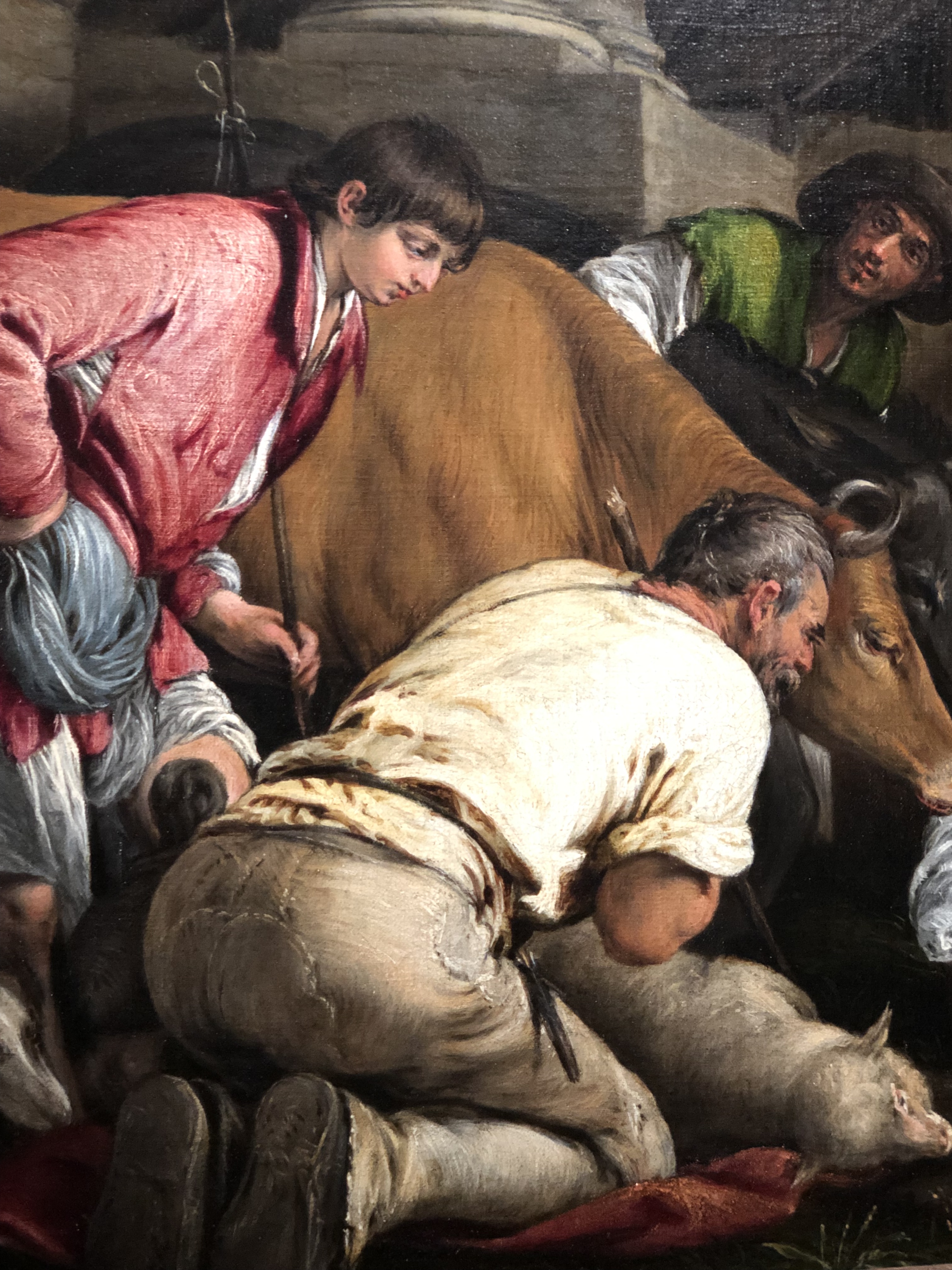 Un peu plus loin, le coup de cœur de cette expo pour moi, le rendu très moderne de cette nativité de Jacopo da Bassano :